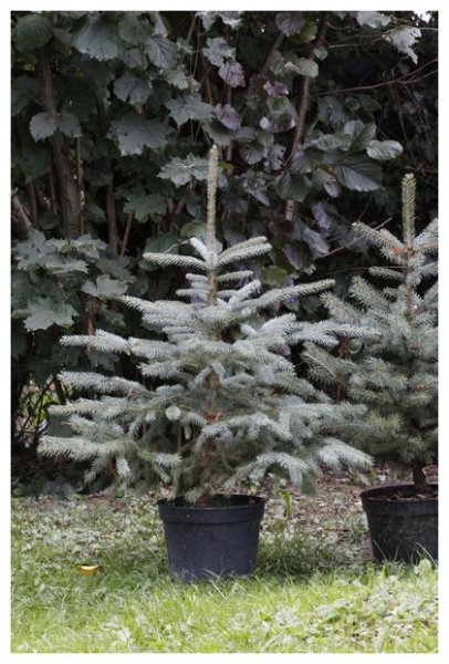 Świerk kłujący srebrny (Picea pungens Engelm.) – drzewo o stożkowym pokroju, osiągające po 30 latach 10-15m wys. Igły sztywne, niebieskozielone do srebrzystych, kłujące. Bardzo małe wymagania co do gleby. Polecany do nasadzeń pojedynczych i kompozycji ogrodowych oraz szpalerów, także jako drzewo choinkowe.